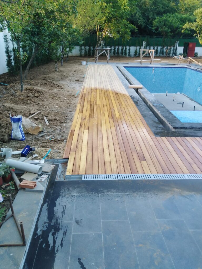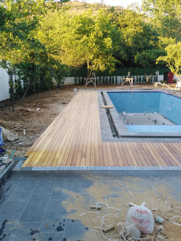 Bodrum Gümüşlük Ahşap Deck İroko Deck Havuz Kenarı.