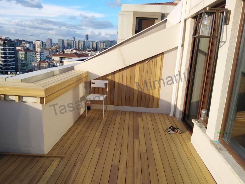 Kadıköy / Suadiye Teras Ahşap Deck Uygulaması. Duvar ve zeminler için.